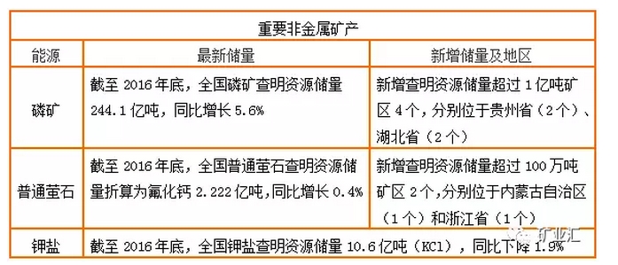國(guó)土資源部提供的數(shù)據(jù)顯示,2016年,除鈾礦、稀土礦外,天然氣、煤層氣、鎢礦、錫礦、銻礦、金礦、磷礦、晶質(zhì)石墨等8種礦產(chǎn)查明資源儲(chǔ)量均有明顯增長(zhǎng);煤炭、石油、銅礦、鋁土礦、鎳礦、螢石6種礦產(chǎn)查明資源儲(chǔ)量小幅增長(zhǎng);鐵礦、鉻鐵礦、鈷礦、鉬礦、鋰礦、鋯礦、鉀鹽7種礦產(chǎn)查明資源儲(chǔ)量小幅下降;頁(yè)巖氣查明資源儲(chǔ)量有一定程度的下降。