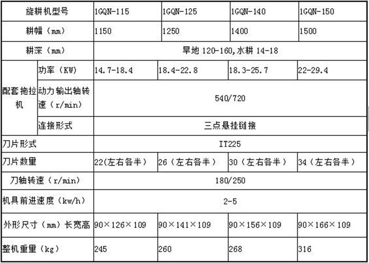 1GQN-90型--1GQN-150型系列旋耕機(jī),采用中間全齒輪傳動(dòng),能與15~40馬力的拖拉機(jī)配套,其結(jié)構(gòu)特點(diǎn):一、結(jié)構(gòu)合理,整體性好、強(qiáng)度大、使用牢固可靠,整體強(qiáng)度大,固定螺栓不易松動(dòng),旋耕機(jī)箱體不易損壞。二、耕幅大于所配套的拖拉機(jī)后輪外緣,耕后無(wú)輪胎壓痕,地表平整。三、刀軸的加工工藝先進(jìn),使旋耕機(jī)作業(yè)平穩(wěn),耕作后的土地平整。四、蓋板采用鋼帶固定,牢固可靠、結(jié)實(shí)耐用。五、獨(dú)特的震壓設(shè)計(jì),其壓力自動(dòng)調(diào)整,碎土能力強(qiáng),耕作后的地面平整。