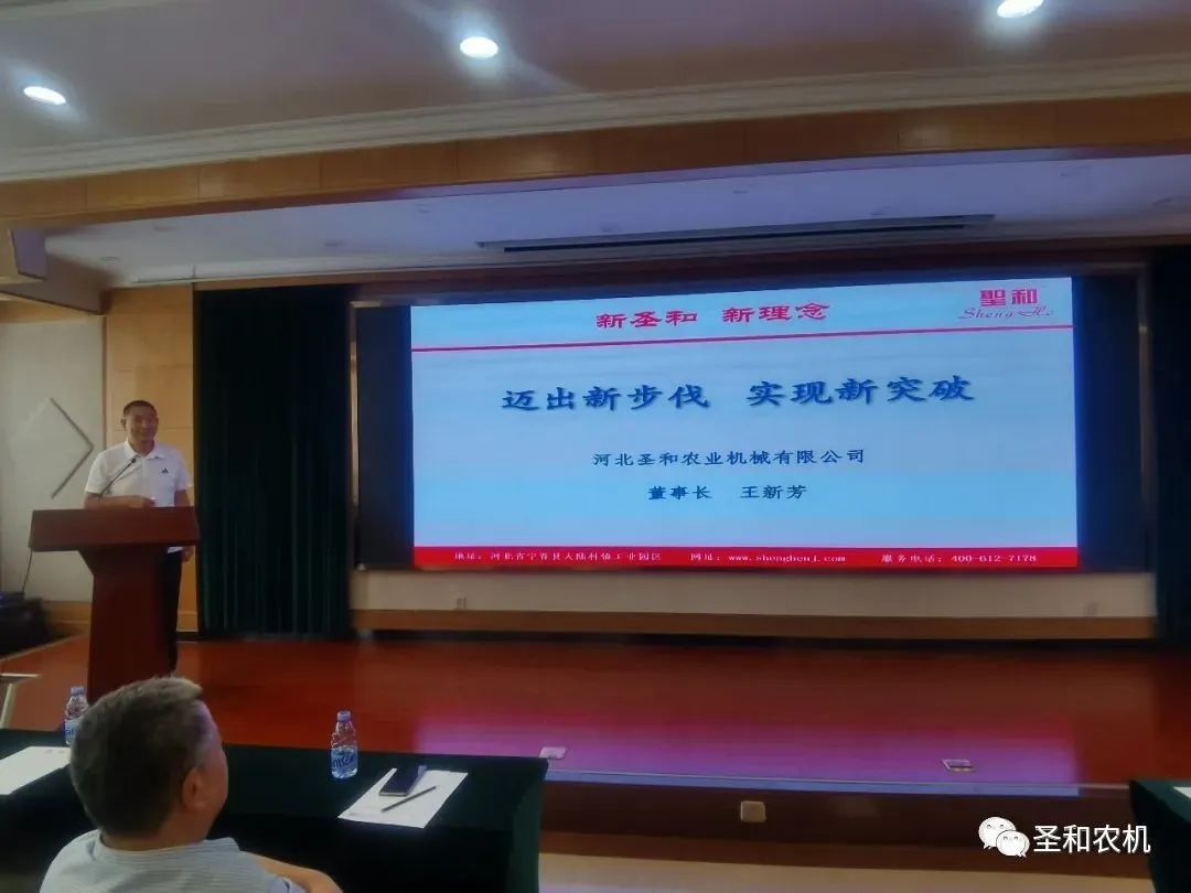 王董事長(zhǎng)首先介紹了河北圣和農(nóng)業(yè)機(jī)械有限公司的基本情況。王董事長(zhǎng)在演講中說(shuō)到:圣和公司現(xiàn)為國(guó)家級(jí)專精特新“小巨人”企業(yè),河北省“專精特新”示范企業(yè),“河北省制造業(yè)單項(xiàng)冠軍企業(yè)”。