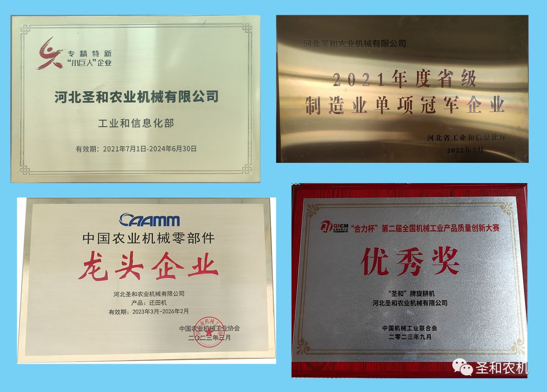 公司現(xiàn)為國(guó)家級(jí)專精特新“小巨人”企業(yè)、河北省“專精特新”示范企業(yè),省級(jí)制造業(yè)單項(xiàng)冠軍企業(yè),河北省首批縣域特色產(chǎn)業(yè)集群“領(lǐng)跑者”企業(yè)。公司擁有25項(xiàng)國(guó)家專利,參與制定多項(xiàng)國(guó)家標(biāo)準(zhǔn)。旗下?lián)碛?ldquo;圣和”、“普勞恩德”兩大品牌,產(chǎn)品遍布大江南北,行銷20多個(gè)國(guó)家和地區(qū)。其中旋耕機(jī)、還田機(jī)雙雙榮獲2022年度銷售冠軍,為中國(guó)耕整地機(jī)械行業(yè)的龍頭企業(yè)。