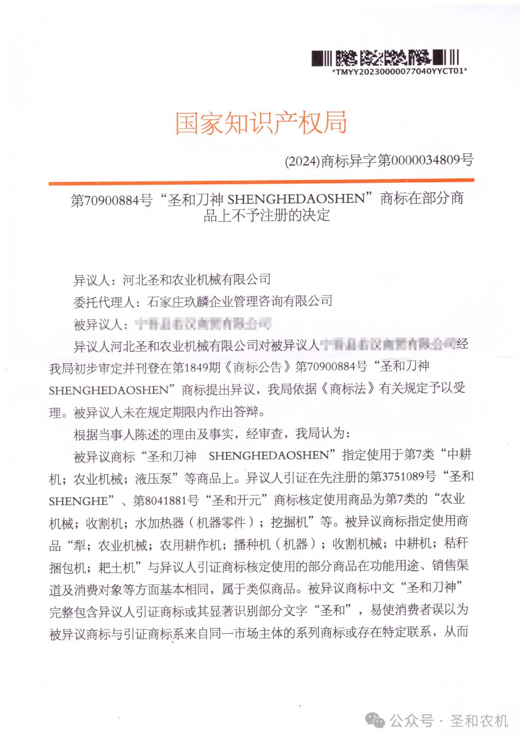 近年來(lái),國(guó)家知識(shí)產(chǎn)權(quán)局從源頭治理,對(duì)商標(biāo)惡意搶注行為實(shí)施部門(mén)聯(lián)動(dòng)、精準(zhǔn)打擊,依法維護(hù)了市場(chǎng)主體的公平競(jìng)爭(zhēng),為營(yíng)造良好的知識(shí)產(chǎn)權(quán)法治環(huán)境、市場(chǎng)環(huán)境和社會(huì)環(huán)境提供了保障。近日,國(guó)家知識(shí)產(chǎn)權(quán)局作出了不予核準(zhǔn)“圣和刀神”商標(biāo)注冊(cè)的決定【(2024)商標(biāo)異字第0000034809號(hào)】,就是打擊商標(biāo)惡意搶注行為的一次意志體現(xiàn)。