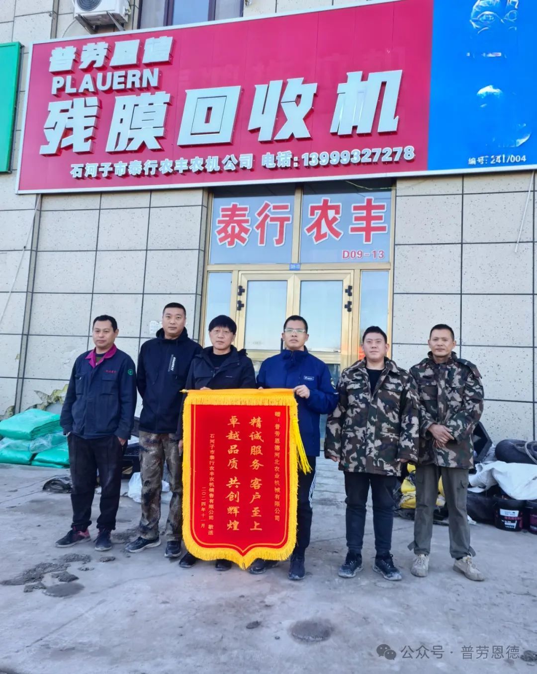 2024年11月15日,新疆石河子市泰行農(nóng)豐農(nóng)機銷售有限公司總經(jīng)理張建維將一面印有“精誠服務(wù),客戶至上;卓越品質(zhì),共創(chuàng)輝煌”的錦旗贈送給普勞恩德(河北)農(nóng)業(yè)機械有限公司西部大區(qū)總經(jīng)理馬建良,以此來表達對普勞恩德售后團隊服務(wù)真誠周到、工作耐心細致的感激之情。