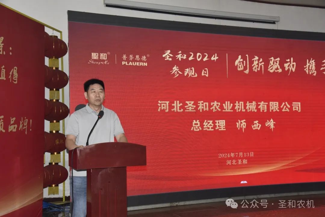 以“創(chuàng)新驅(qū)動,攜手共贏”為主題的“2024年公司參觀日”活動于2024年7月11日—13日,在河北圣和農(nóng)業(yè)機械有限公司盛大舉行。400余位來自南方省份的的經(jīng)銷商代表分兩期會師圣和,共襄盛舉。