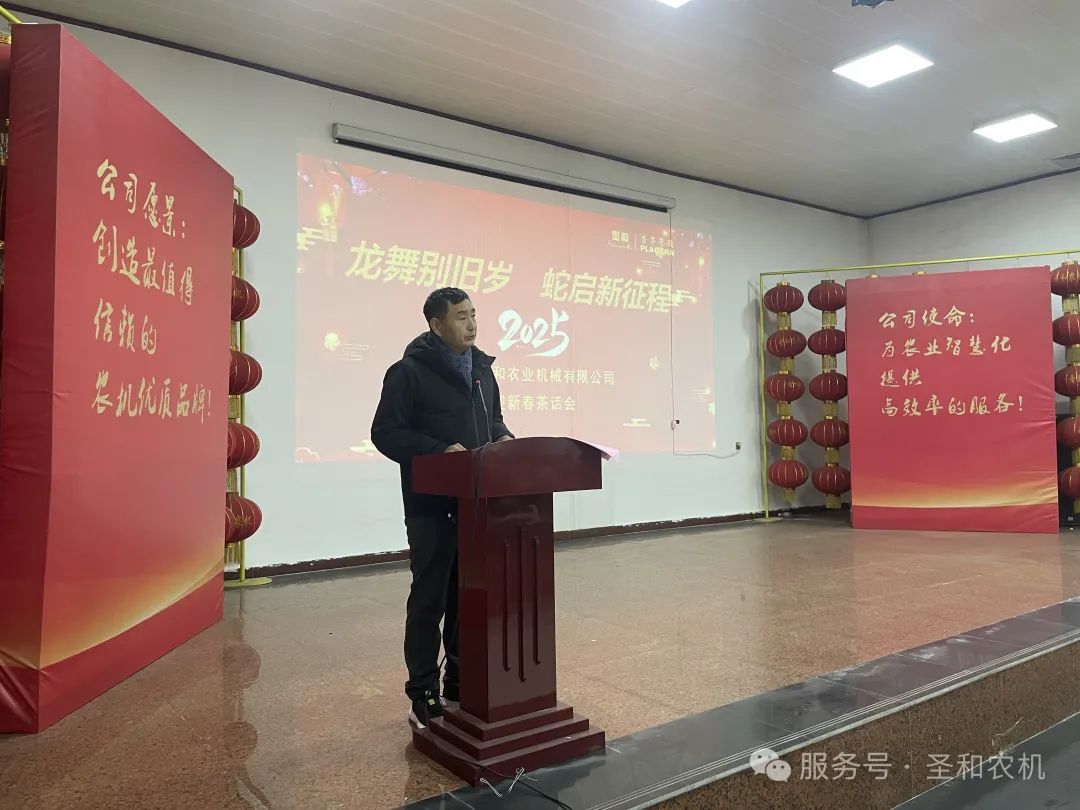 2025年1月24日,河北圣和農(nóng)業(yè)機械有限公司在公司培訓大廳,隆重舉辦了以“龍舞別舊歲,蛇啟新征程”為主題的2025年迎春茶話會。此次茶話會旨在總結過去一年的工作成績,展望新一年的發(fā)展目標,同時增進員工之間的交流與友誼,營造和諧融洽的企業(yè)文化氛圍。