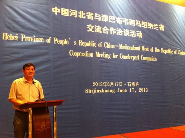 2013年6月17日,在中國河北省與津馬布韋西馬紹納蘭省交流合作洽談會上,圣和董事長王新芳在洽談會上發(fā)表了講話,并與津巴布韋西馬紹納蘭省省長納爾遜·薩姆坎格進行了交流洽談活動。