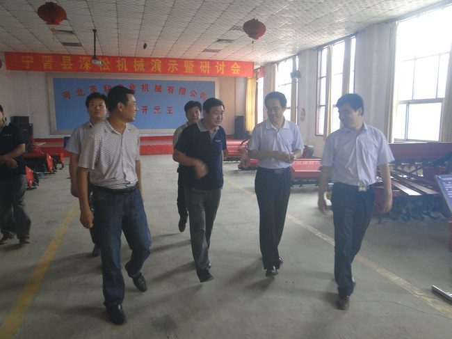 河北寧晉縣人大副主任郝晨鎖、鎮(zhèn)長宋瑞剛等領(lǐng)導一同來我司調(diào)研工作,圣和董事長王新芳就廠部規(guī)模建設、工作生活情況進行了詳細講解,郝晨鎖副主任對我司發(fā)展、產(chǎn)品及工作情況給予充分肯定,并希望我司再接再厲,促進農(nóng)業(yè)機械再上新臺階。