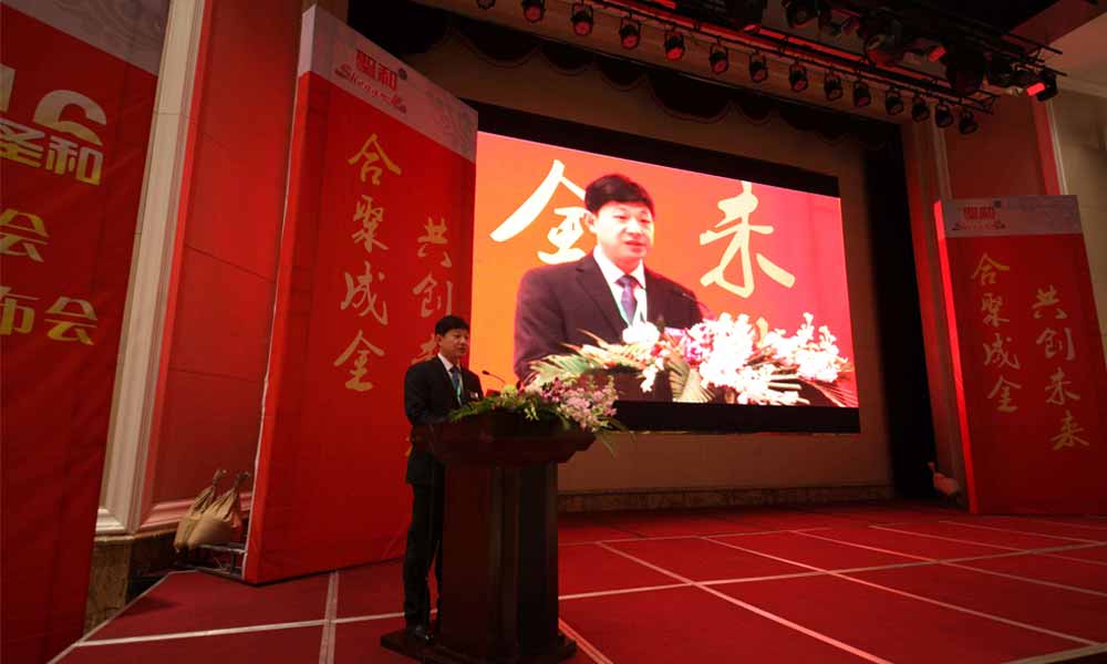 河北圣和董事長王新芳首先為大會做主題為“合聚成金、共創(chuàng)未來”的致辭。他表示,過去的十年,圣和公司面對充滿競爭激烈的市場環(huán)境,以追求穩(wěn)健增長為目標,順應市場經濟發(fā)展形勢,以創(chuàng)新發(fā)展觀為導向,堅持以人為本,大力開展企業(yè)文化建設,形成公司與經銷商、供應商、終端客戶多贏的良好局面,促進了公司的健康發(fā)展。公司自2015 年起,制定了5-10年的中長期戰(zhàn)略發(fā)展規(guī)劃,2015年,公司在行業(yè)形勢發(fā)展嚴峻的形勢下,取得了較好的經營業(yè)績,實現了五年創(chuàng)新發(fā)展的開門紅,成為國內旋耕機和秸稈還田機領域的領頭企業(yè)。