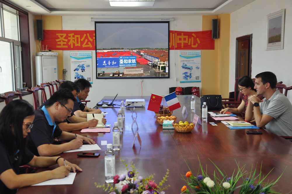 圣和公司董事長王新芳、總經(jīng)理師西峰熱情迎接并接待了Yannck Sellin先生。董事長王新芳詳細向Yannck Sellin先生介紹了圣和公司的發(fā)展歷程技術力量、產(chǎn)品和公司管理以及企業(yè)文化,通過企業(yè)宣傳片對圣和公司有更多的了解和認識,就國際國內(nèi)農(nóng)機行業(yè)與未來發(fā)展進行了交流與溝通。隨后,在董事長王新芳及總經(jīng)理師西峰全程陪同下,Yannck Sellin先生參觀了日新月異的現(xiàn)代化生產(chǎn)車間,圣和公司因地制宜地加大農(nóng)業(yè)機械科技創(chuàng)新與研發(fā)投入,發(fā)展現(xiàn)代化農(nóng)業(yè)機械設備,保障農(nóng)業(yè)機械的不斷創(chuàng)新,追求品質卓越,推動農(nóng)業(yè)發(fā)展。