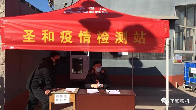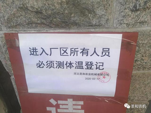 河北圣和農(nóng)業(yè)機(jī)械有限公司嚴(yán)格遵守各級(jí)政府的疫情防控安排,嚴(yán)格做好復(fù)工前的準(zhǔn)備工作。主要措施如下:1、成立疫情防控領(lǐng)導(dǎo)小組,逐級(jí)建立防疫工作組,層層防控。2、通過網(wǎng)絡(luò)、宣傳版與電子大屏播放等多種手段,宣傳貫徹防疫制度與防疫知識(shí),加強(qiáng)員工的監(jiān)督與管理。3、在公司門口建立二十四小時(shí)值班的疫情防控點(diǎn)、應(yīng)急隔離室、嚴(yán)格限制外來人員與車輛進(jìn)入廠區(qū),建立職工每日排查制度。4、統(tǒng)計(jì)與購(gòu)買防疫物資:口罩、防護(hù)眼鏡、橡膠手套、消毒酒精、洗手液等,每個(gè)車間配備廢棄口罩收集桶、消毒酒精、洗手液等個(gè)人防護(hù)用品。5、每天對(duì)全廠區(qū)、全覆蓋進(jìn)行消毒殺菌。6、建立健全防疫規(guī)程和制度。制定了完備的錯(cuò)時(shí)上下班、每天的體溫監(jiān)測(cè)、分散就餐制度等,減少人員聚集,加強(qiáng)室內(nèi)通風(fēng)。7、建立針對(duì)員工發(fā)燒、乏力、干咳、呼吸困難等癥狀的應(yīng)急預(yù)案,隔離措施與應(yīng)急交通送醫(yī)路線、定點(diǎn)醫(yī)院聯(lián)系等預(yù)案。