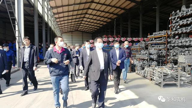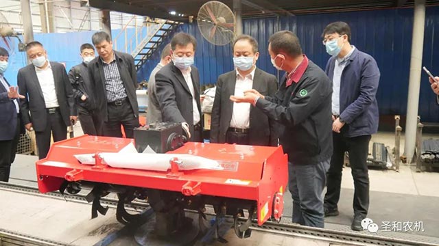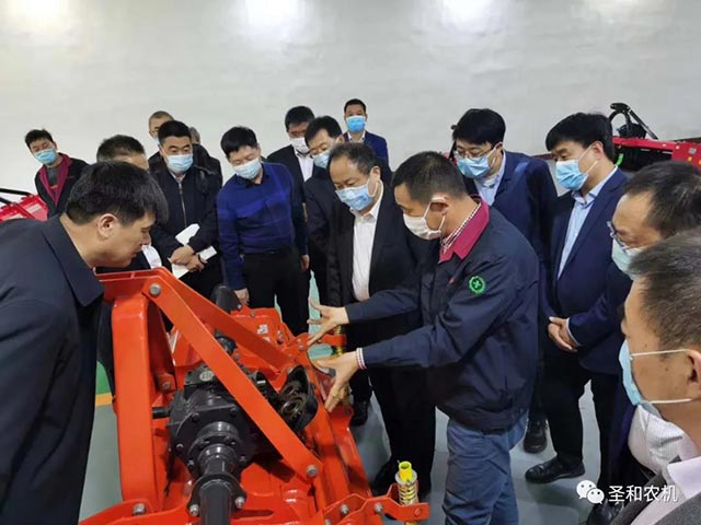 在參觀考察過程中,董事長詳細介紹每一個生產(chǎn)制作環(huán)節(jié),不同農(nóng)機的作用與特點,參觀完畢后領(lǐng)導對圣和公司的管理模式、生產(chǎn)工藝等給予高度評價,并給出了提升建議。