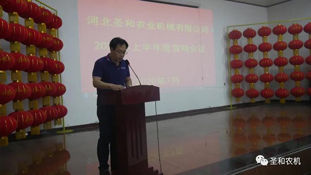 7月13日上午,河北圣和農(nóng)業(yè)機(jī)械有限公司隆重召開2020年上半年營銷會議。本次會議由營銷數(shù)據(jù)通報、市場經(jīng)驗(yàn)分享、生產(chǎn)促銷措施、營銷工作重點(diǎn)、公司領(lǐng)導(dǎo)講話等五部分組成。