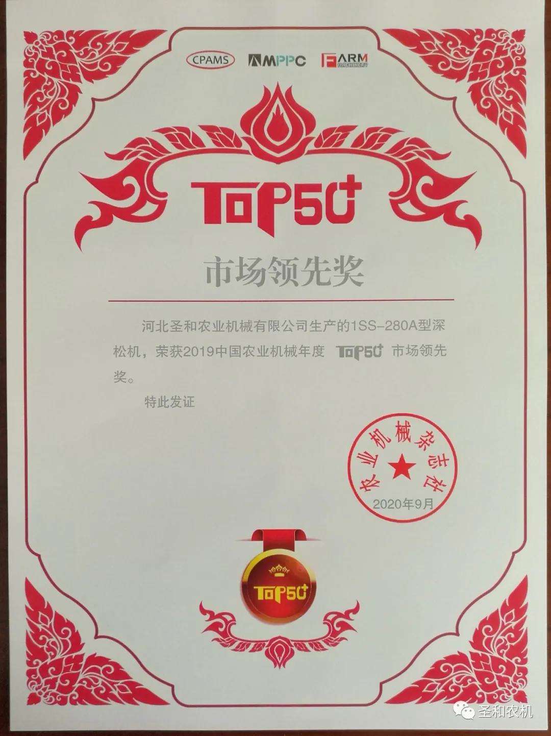 登高望遠(yuǎn),再攀高峰!圣和公司的1SS-280A型深松機(jī)獲得2019年我國(guó)銷量冠軍(據(jù)大田農(nóng)社/農(nóng)機(jī)360網(wǎng)發(fā)布數(shù)據(jù)),
