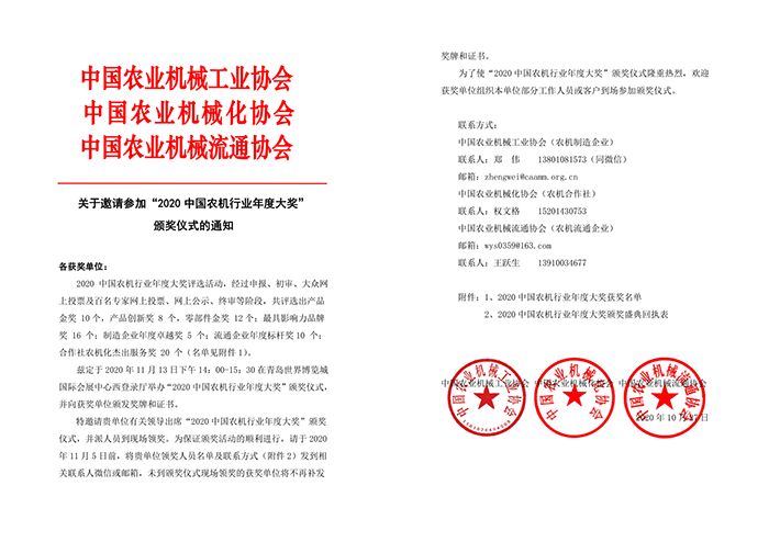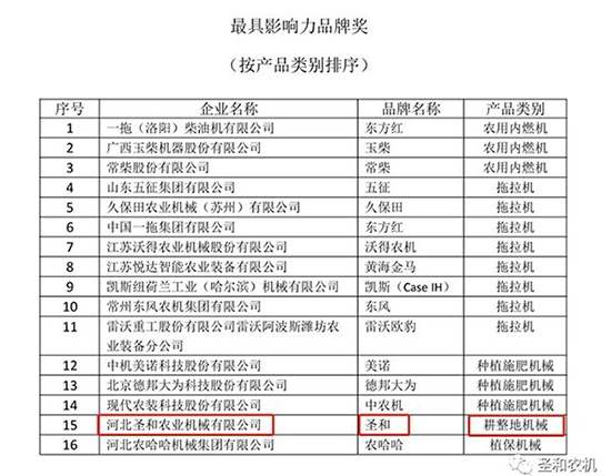 “圣和"榮獲最具影響力品牌獎項|全國農(nóng)機行業(yè)耕整地機械類唯一獲獎企業(yè)!