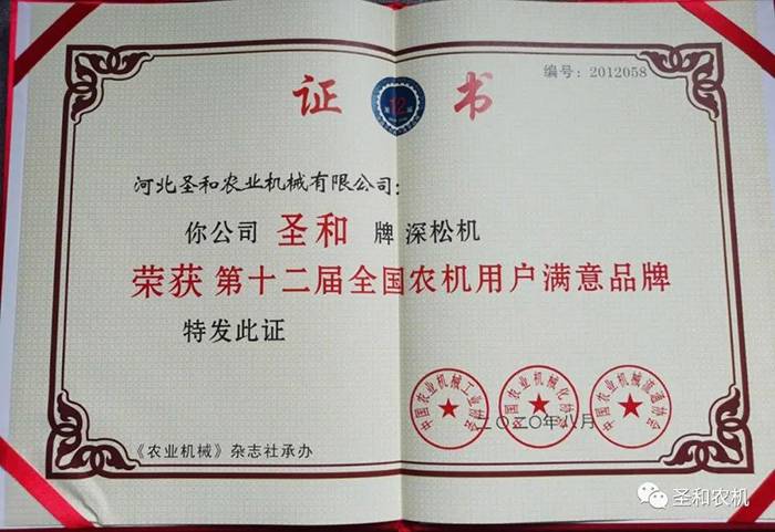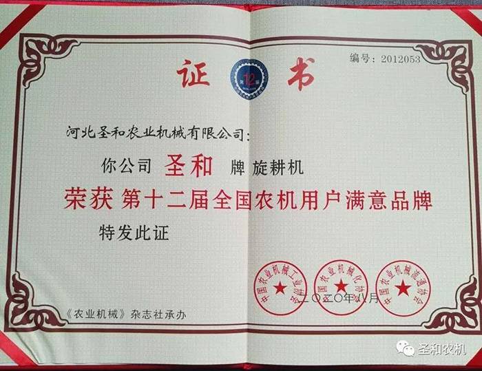 四、全國農(nóng)機(jī)用戶滿意品牌——圣和再獲大獎(jiǎng)!