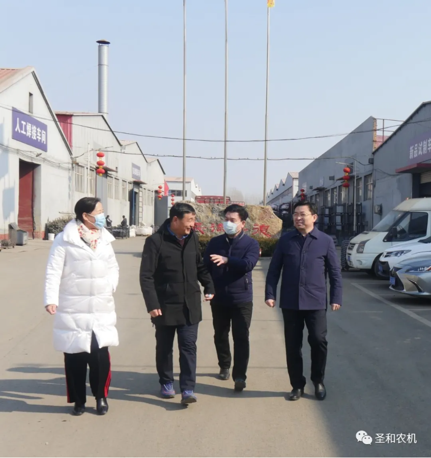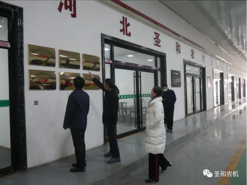 2022年2月16日,河北省農(nóng)機(jī)局戎局長(zhǎng),劉副局長(zhǎng),省推廣總站史站長(zhǎng),邢臺(tái)市趙局長(zhǎng)蒞臨圣和公司調(diào)研!公司事長(zhǎng)王新芳熱情接待!