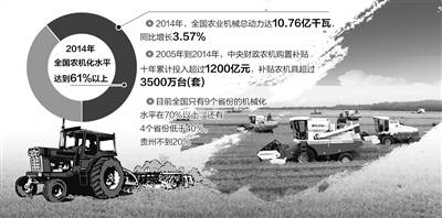 61%的農(nóng)機(jī)化率意味著我國(guó)農(nóng)業(yè)生產(chǎn)方式已實(shí)現(xiàn)由人力畜力為主向機(jī)械作業(yè)為主的歷史性跨越。2004年底,我國(guó)農(nóng)機(jī)化發(fā)展史上第一部法律《農(nóng)業(yè)機(jī)械化促進(jìn)法》正式實(shí)施。此后農(nóng)機(jī)化發(fā)展迎來了黃金十年,中央財(cái)政農(nóng)機(jī)購(gòu)置補(bǔ)貼10年累計(jì)投入超過1200億元,補(bǔ)貼農(nóng)機(jī)具超過3500萬臺(tái)(套)。農(nóng)機(jī)化水平增幅超過法律實(shí)施之前35年的總和,農(nóng)機(jī)工業(yè)總產(chǎn)值從854億元增加到3571億元。